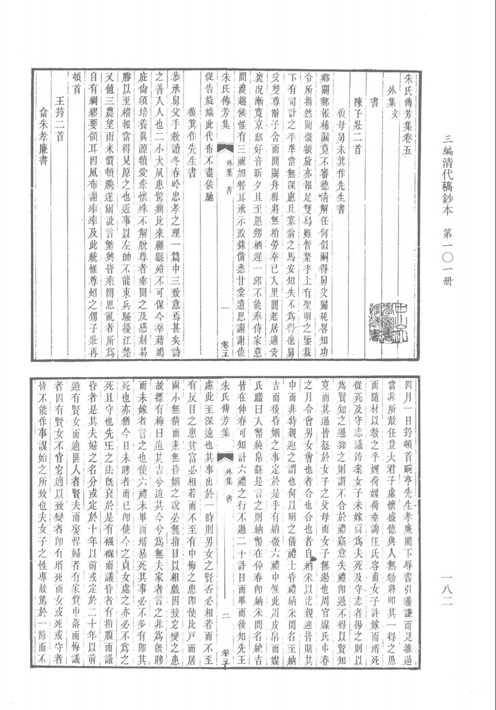 第一〇一册:山翁忞禅师随年自谱、何氏传赞、朱氏传芳集、朱次琦先生事实考、朱九江先生纪念堂落成诗文录、诰授荣禄大夫广西布政使护理巡抚康公事状、列传寓贤、屈翁山先生年谱、德宗实录、阮氏寻复二世祖考妣坟墓记序、明经二樵黎君行状