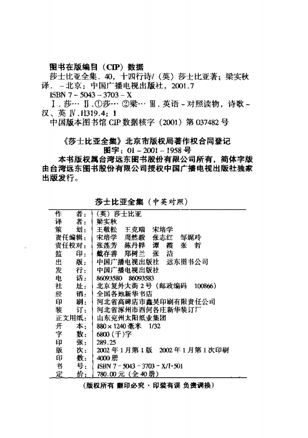 莎士比亚全集(中英对照)共40册