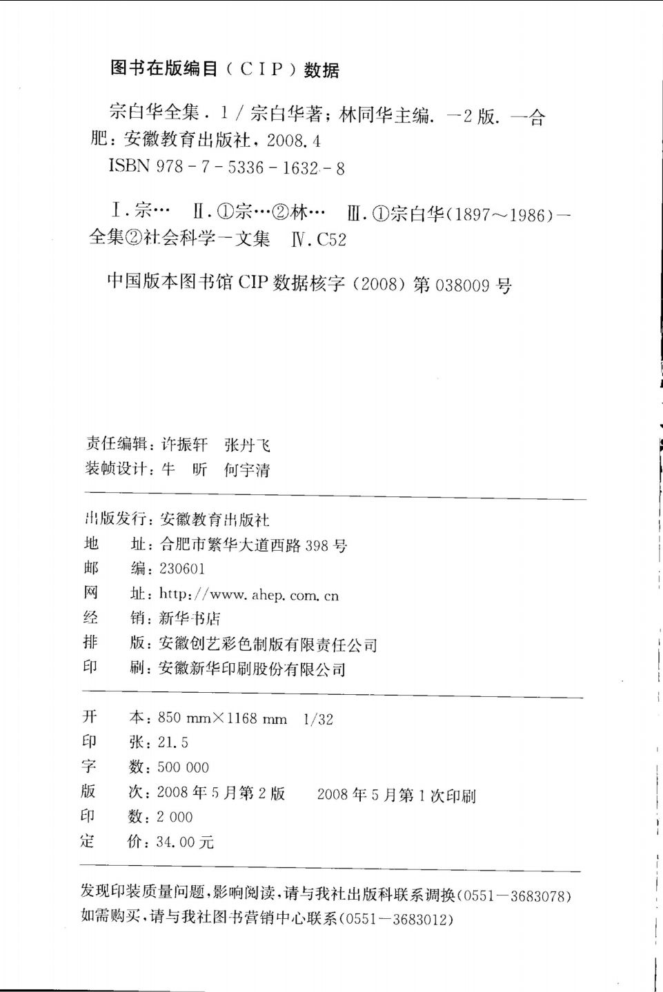 《宗白华全集》分为四卷,第一、二、三卷收宗先生著作,第四卷收宗先生译文。著作部分的大部分文字,原是宗先生的讲稿、笔记,这次经过整理,加以注释,编入全集,首次出版。为了保存历史,本编委会决定,对宗先生的原作(包括手稿),除文字明显讹误予以订正外,其余不作任何增删与修改。