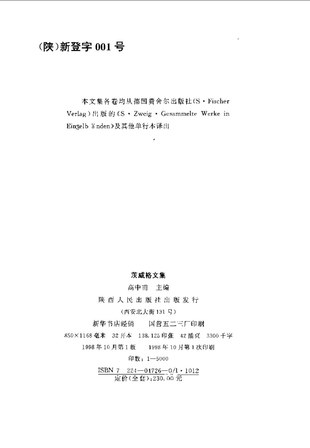 茨威格的文集,但没有陕西人民出版社的这个齐。这个集子前三卷是小说卷(