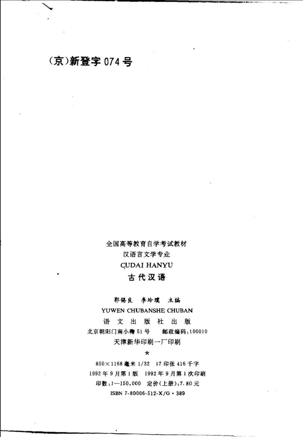 019全国高等教育自学考试指定教材 汉语言文学专业 古代汉语 上 第2版_11587034.pdf 164.26 MB