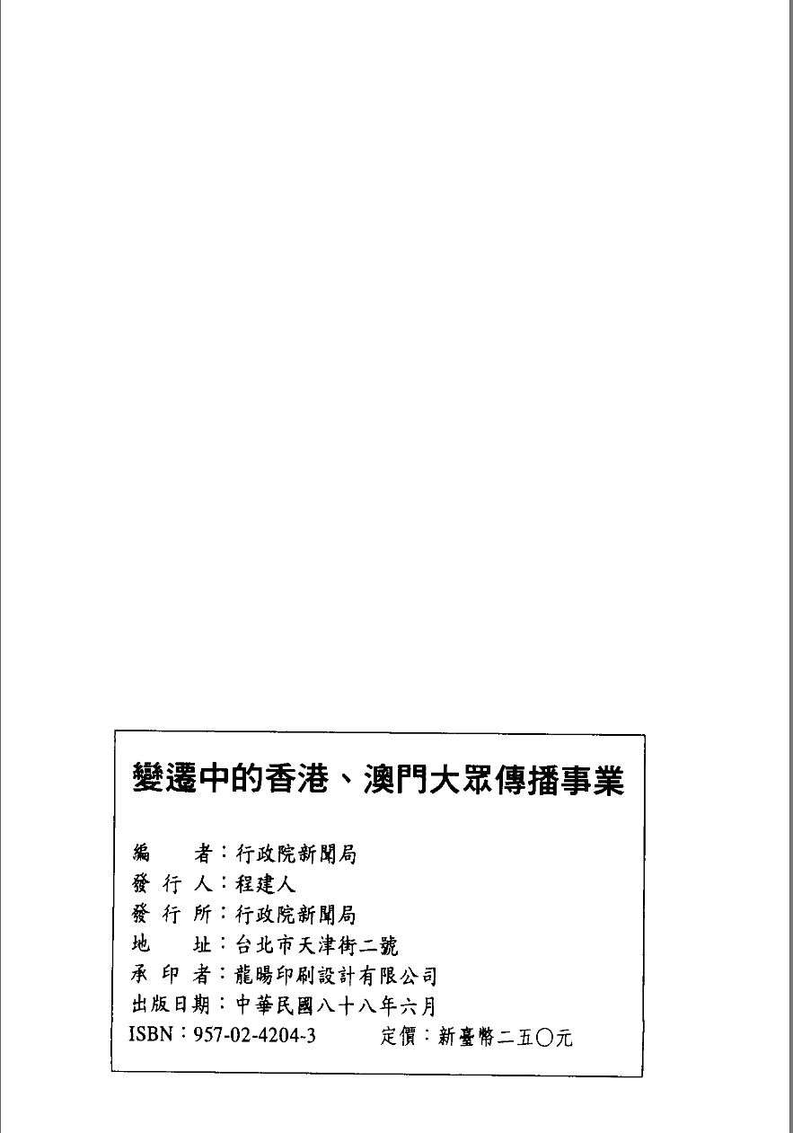 012_变迁中的香港澳门大众传播事业_行政院新闻局编_行政院新闻局(1).djvu 6.04 MB