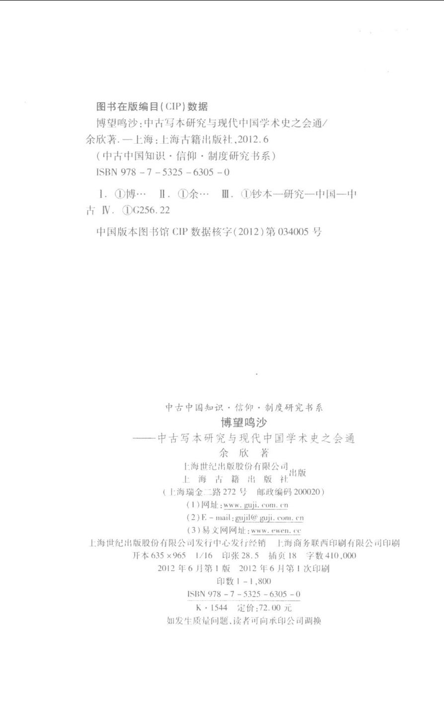 001中古中国知识·信仰·制度研究书系_博望鸣沙 中古写本研究与现代中国学术史之会通_作 者 :余欣著_上海古籍出版社 . 2012.06_13168843_.pdf 171.69 MB