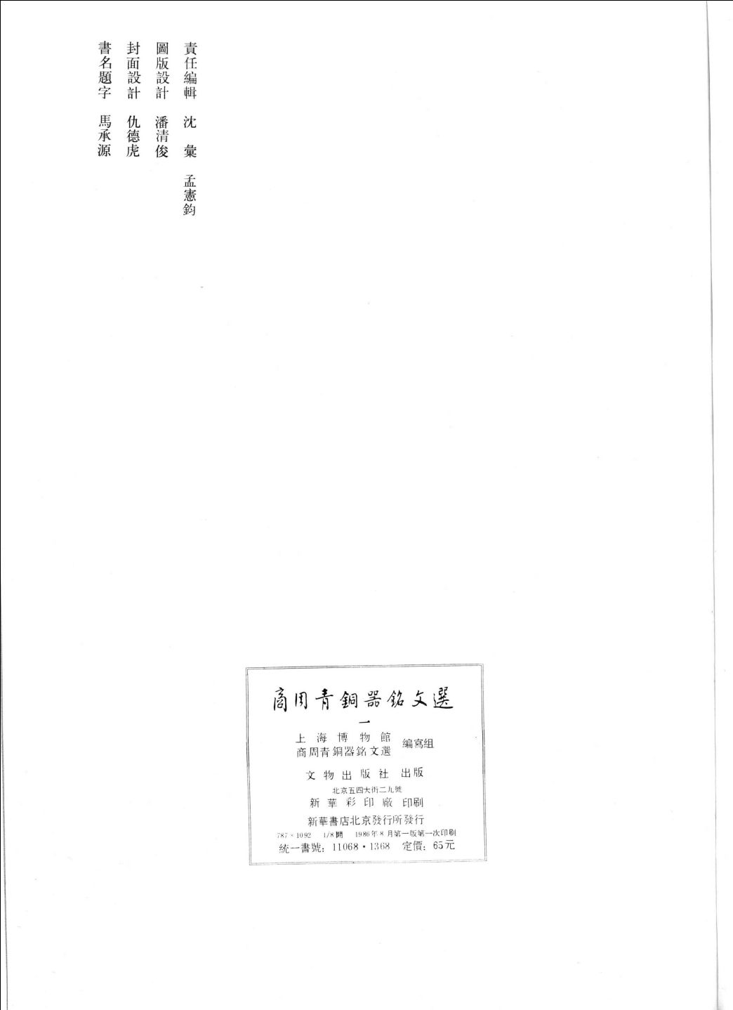 作者:上海博物馆《商周青铜器铭文选》编写组编出版项