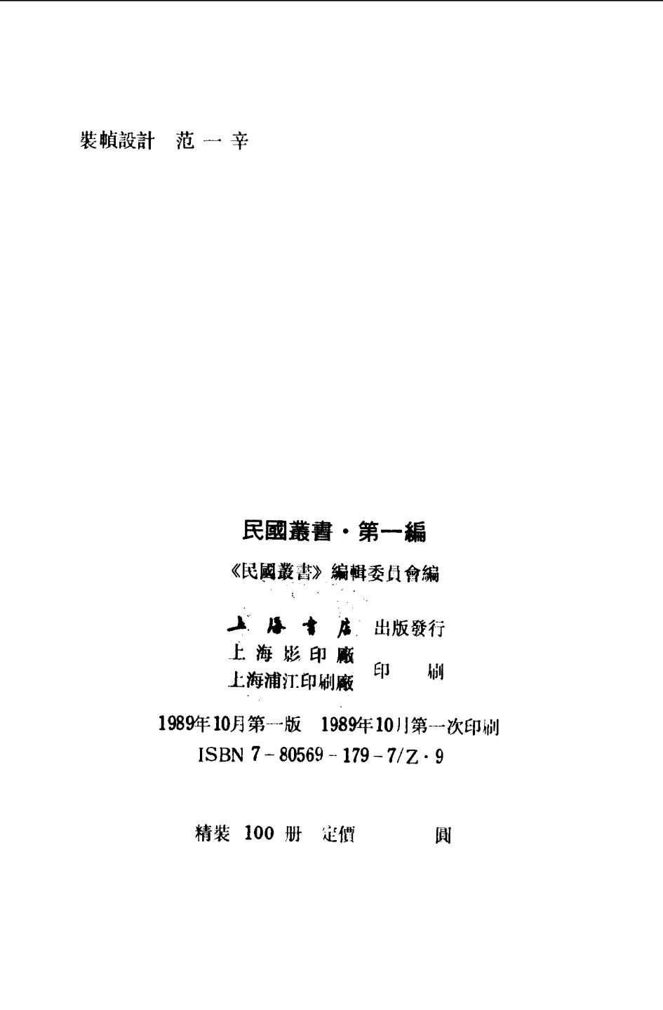 《民国丛书》由上海书店1989年出版发行,主要收录了中华民国时期在我国境内出版的中文图书。还酌情选收了同时期国外出版的中文图书。 本丛书共分十一大类:一哲学,宗教类;二,社会科学纵论类;三,政治,法律,军事类;四,经济类;五,文化,教育,体育类;六,语言,文字类;七,文学类;八,美术,艺术类;九,历史,地理类;十,科学技术类;十一,综合类。《民国丛书》原计划入编三千余种文献,分十辑陆续出版。待出齐后还将编制全书的总目录。但是该丛书自八九年出版第一辑迄九六年出版第五辑后便夏然而止,实际收书1126种。