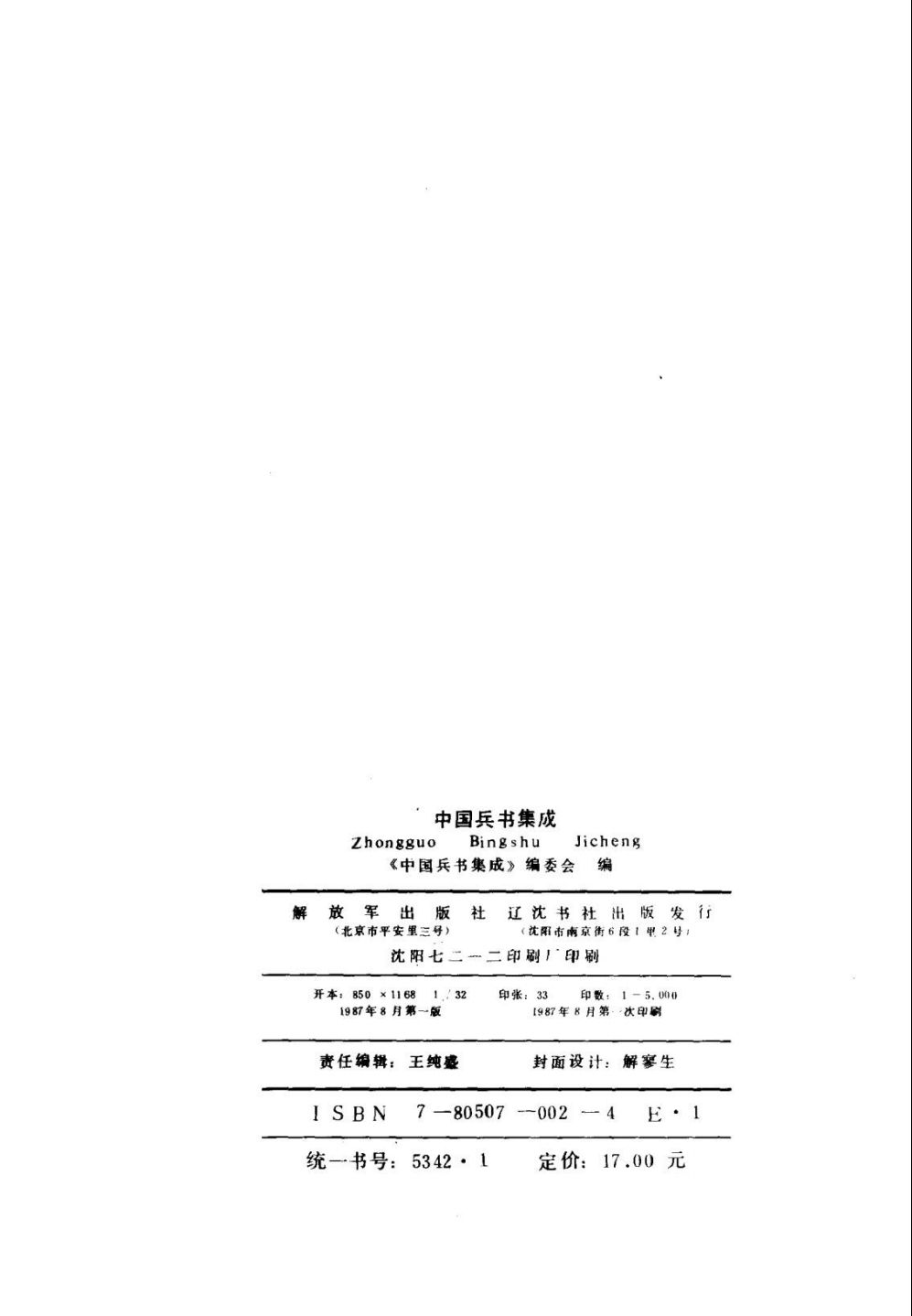 出版社:解放军出版社 辽沈书社 / 1993.5