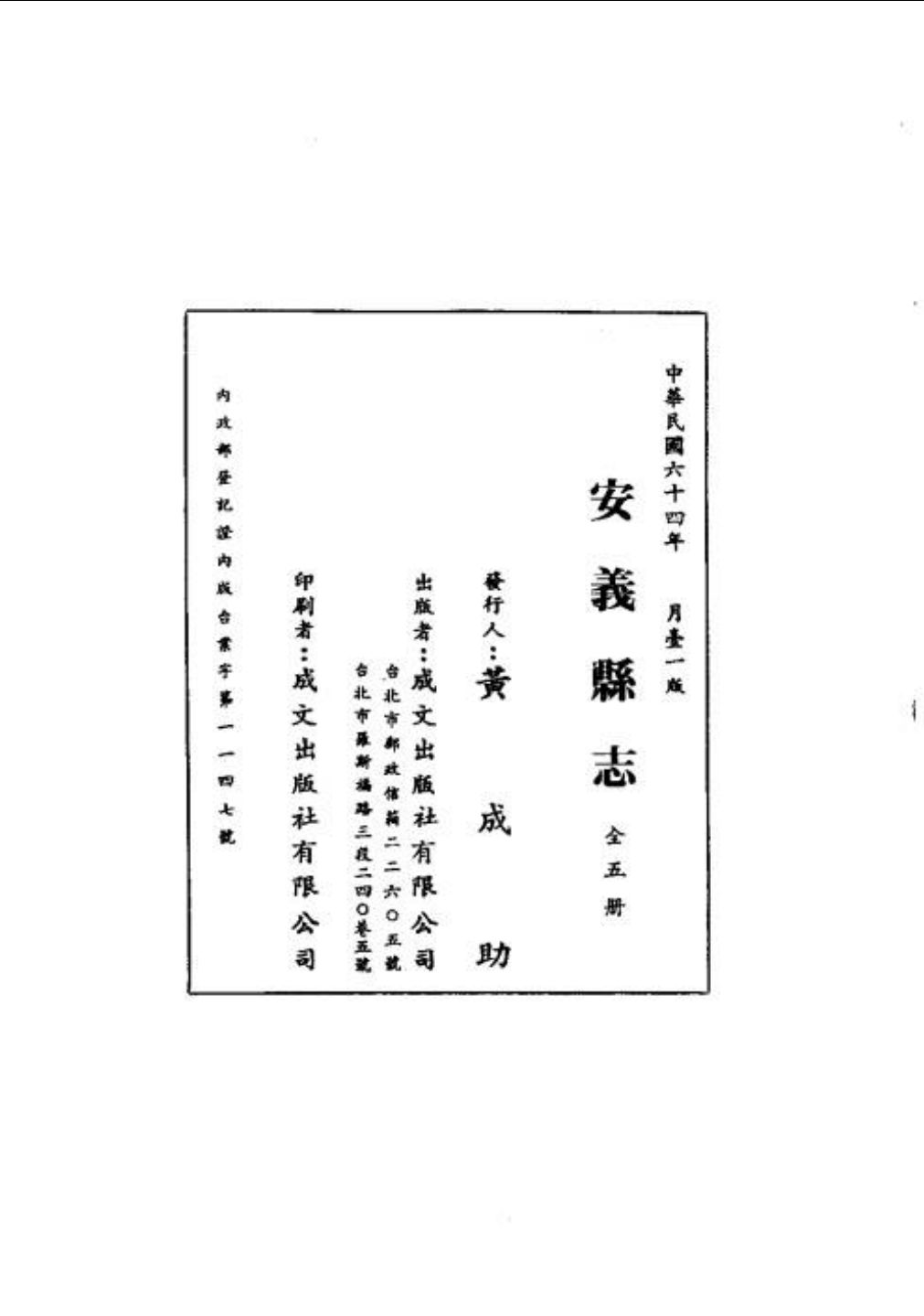 成文出版社 辑 民国五十五年至五十九年、六十三年至六十五年、七十二年至七十四年 台北成文出版社 影印本
