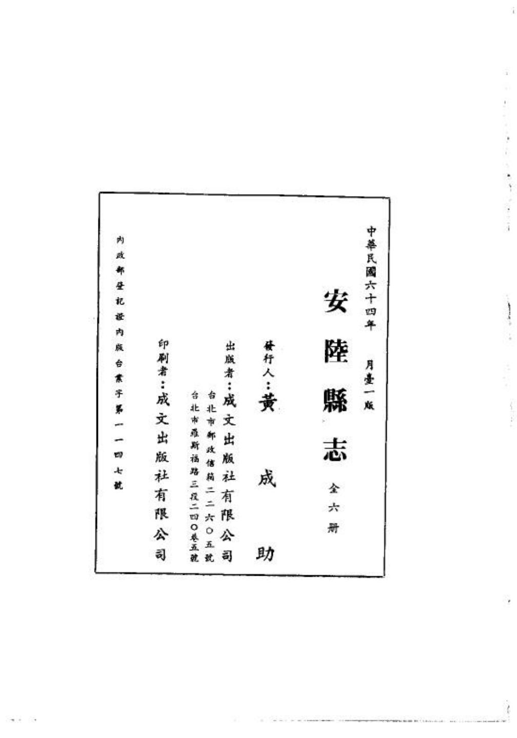 成文出版社 辑 民国五十五年至五十九年、六十三年至六十五年、七十二年至七十四年 台北成文出版社 影印本