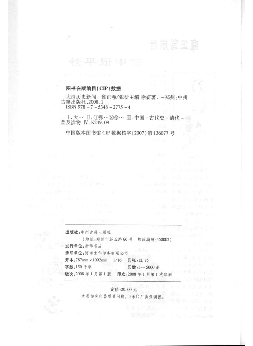 006大清历史新闻 雍正卷(徐妍 著).pdf 149.86 MB