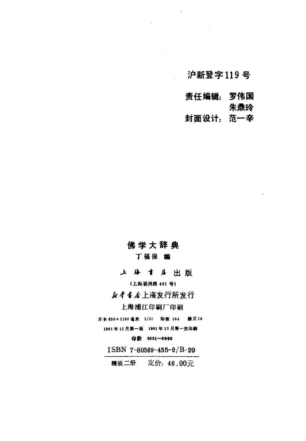 丁福保佛学大词典,出版社:上海书店出版社,1991