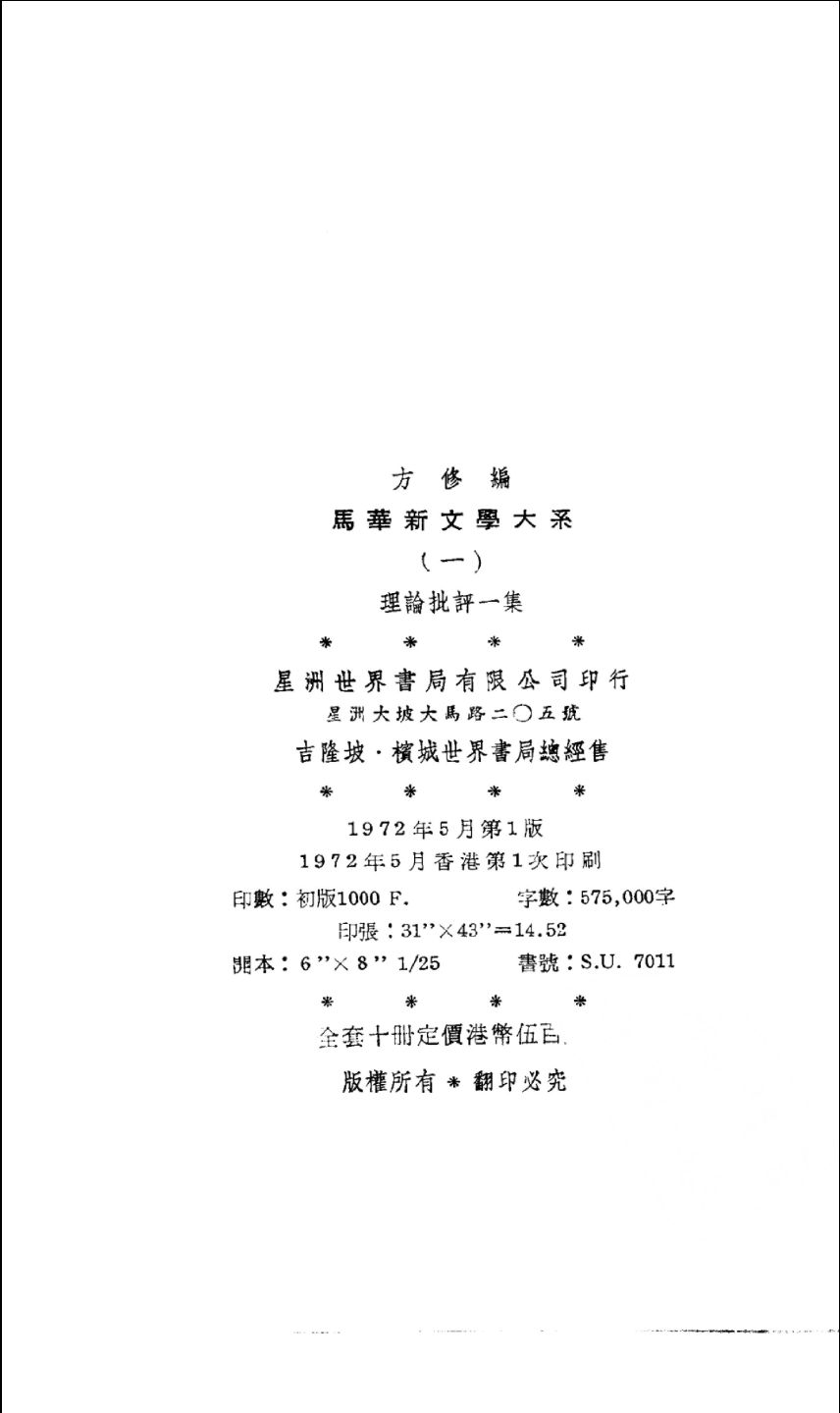 出版社:星洲世界书局