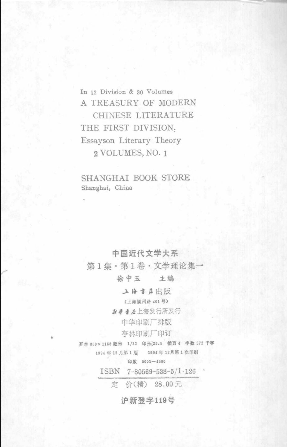 中国近代文学大系 1840~1919 第01集 第01卷 文学理论集 1 徐中玉主编