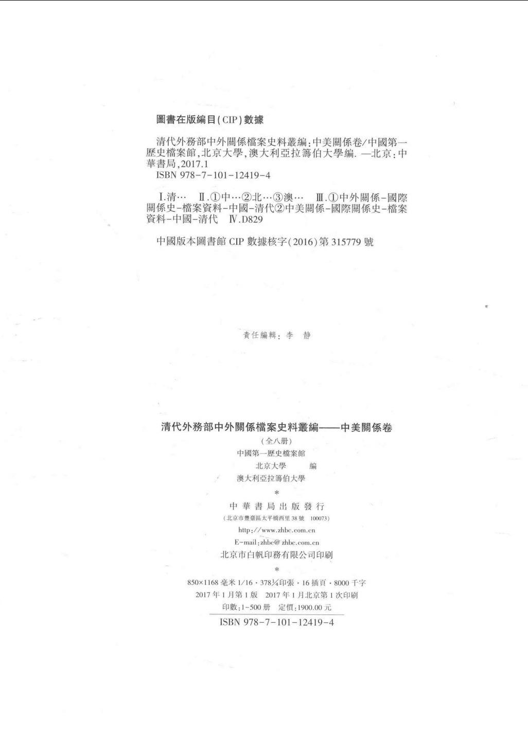 作者:中国第一历史档案馆,北京大学,澳大利亚拉筹伯大学编