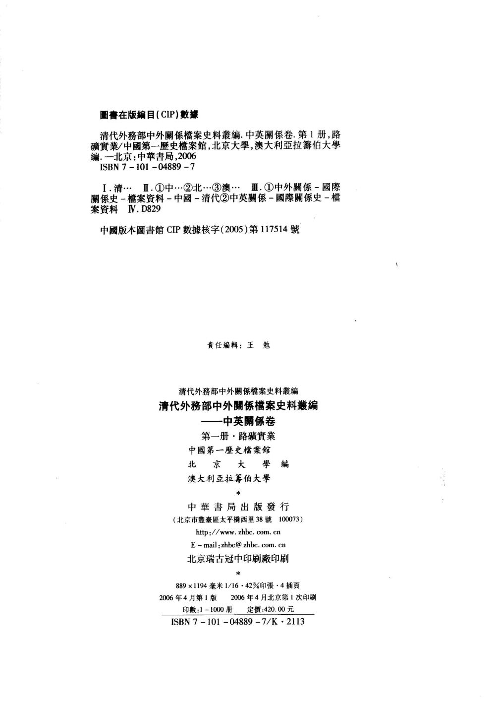 作者:中国第一历史档案馆,北京大学,澳大利亚拉筹伯大学 编
