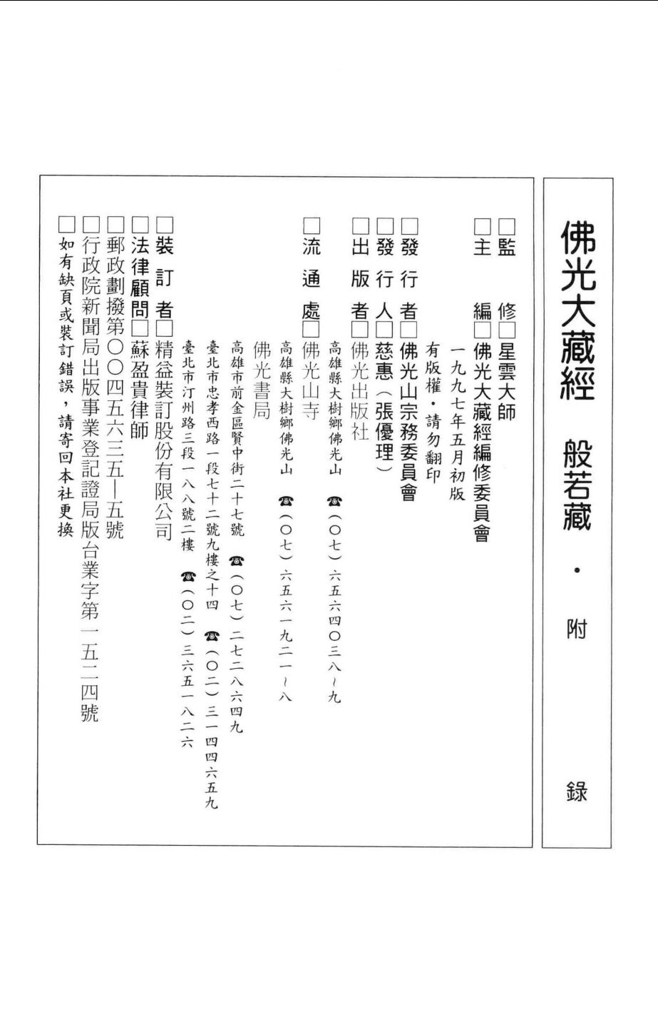 │001佛光大藏经 般若藏·附录 星云大师监修;佛光大藏经编修委员会主编 佛光出版社 1997_13423137 .pdf 153.20 MB