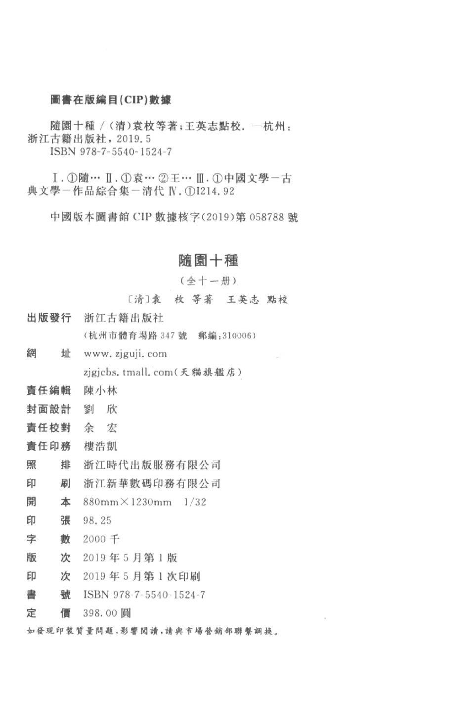 出版社:浙江古籍出版社