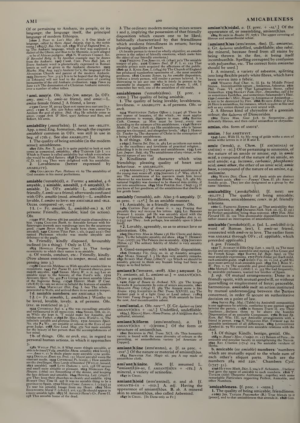 该词典收录了出版时亦知的所有进入到英文中的词汇,以及在该词的来源和流变(详参1989年版前言)。每一个词汇都列有注音,第一版时英语国际音标尚不成熟,故而,OED使用了其独有的注音方式。对于词汇的释义详尽,其中set一词更是有400余项解释。很多词从公元八九世纪起释义,每一项释义更是将每一百年的用例列举一至两个。因此,与其说这是一部英文词典,还不如说是一部英语史巨著。