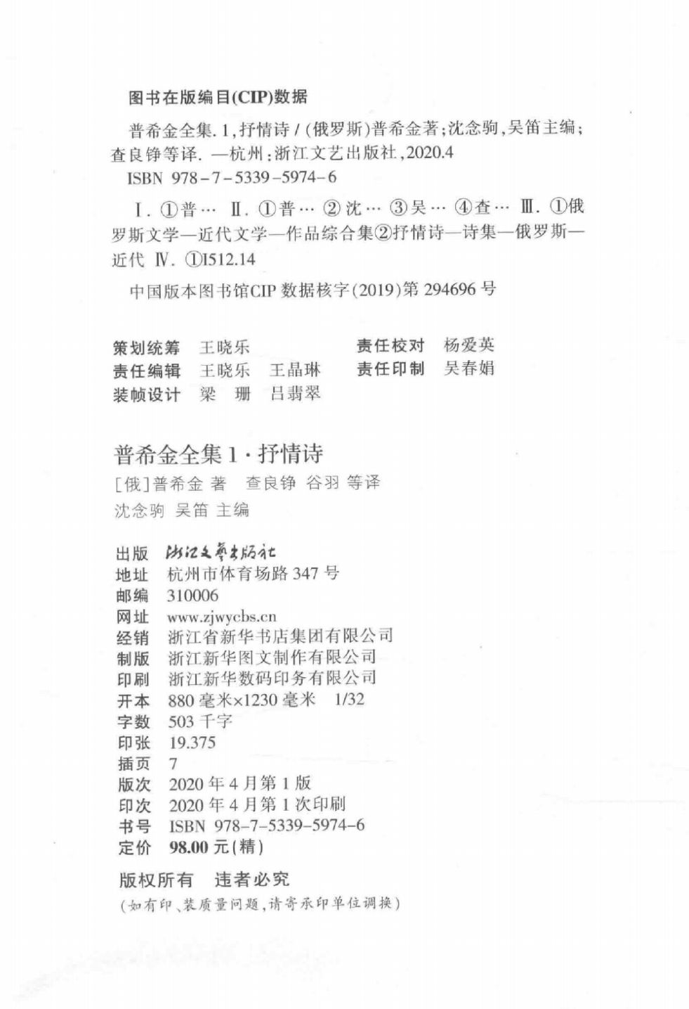 作者:(俄)普希金著 沈念驹,吴迪主编