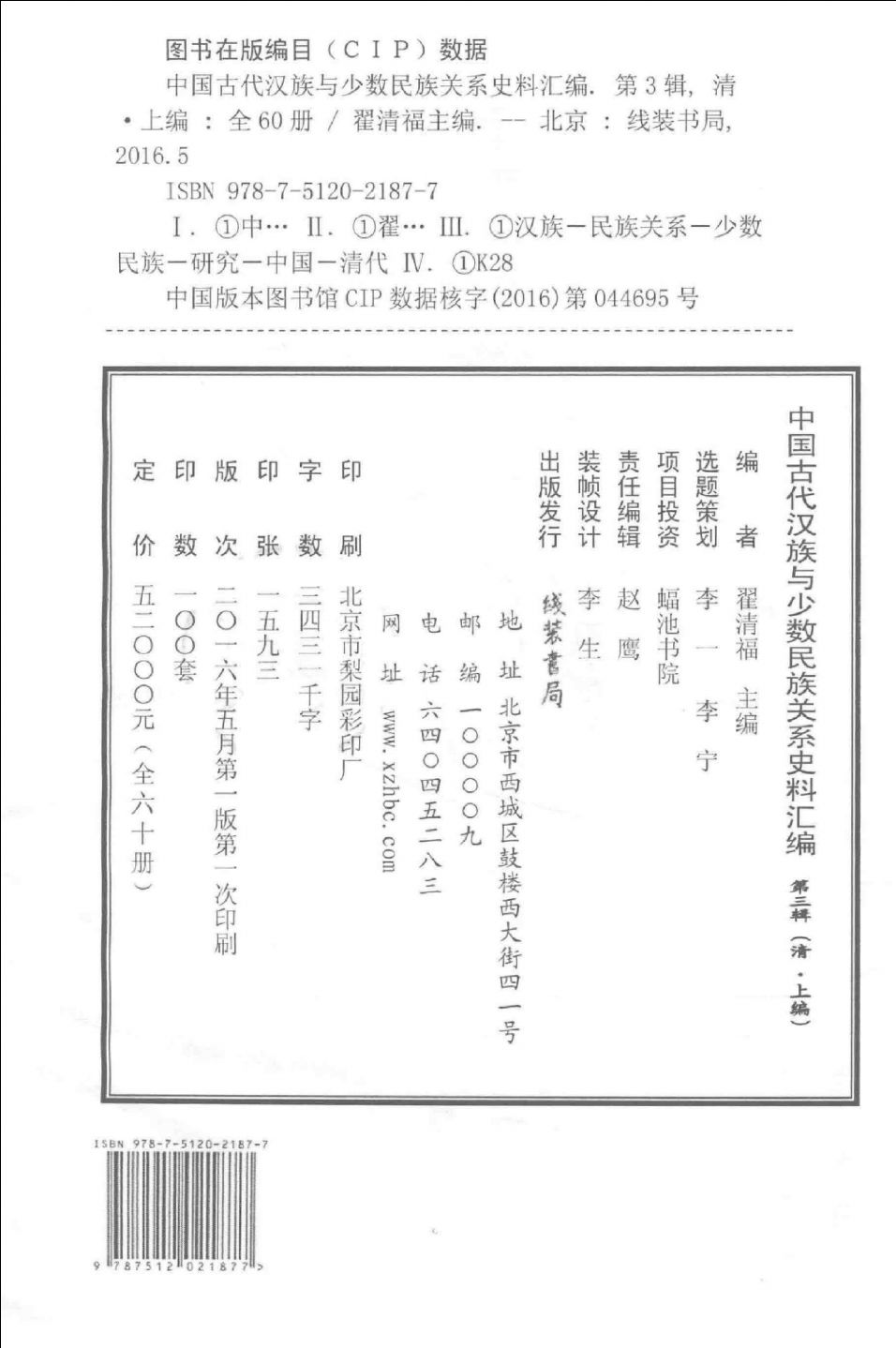 中国古代汉族与少数民族关系史料汇编 第3辑 清 上(全60册)