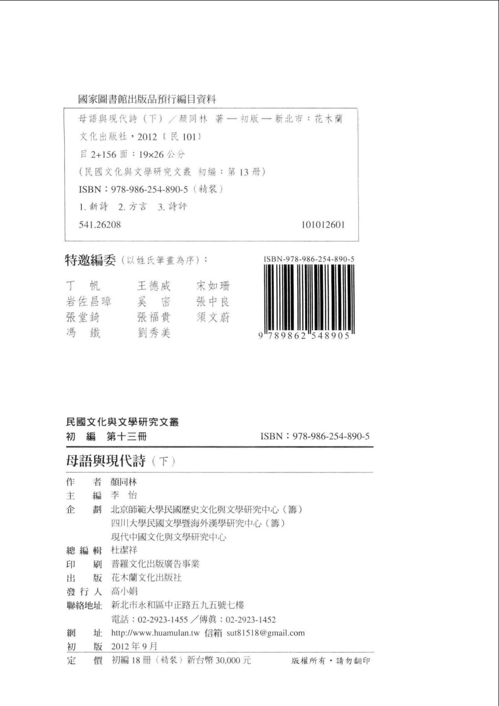 013民国文化与文学研究文丛 初编 第13册 母语与现代诗 下.pdf 78.74 MB