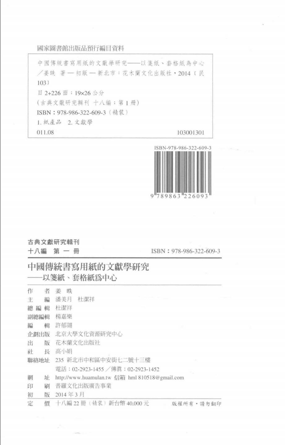 001古典文献研究辑刊 十八编 第1册 中国传统书写用纸的文献学研究 以笺纸、套格纸为中心,姜昳著,2014_14699164.pdf 127.68 MB