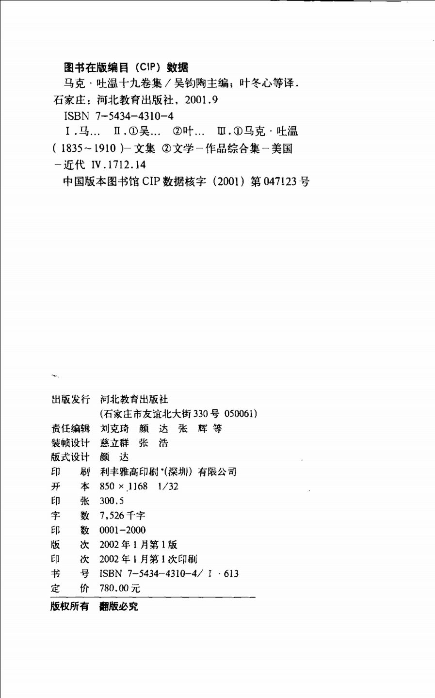 马克·吐温十九卷集 第01卷:中短篇故事全集(上:1865-1880)([美]马克·吐温著,叶冬心等译)_12663852.pdf 309.31 MB