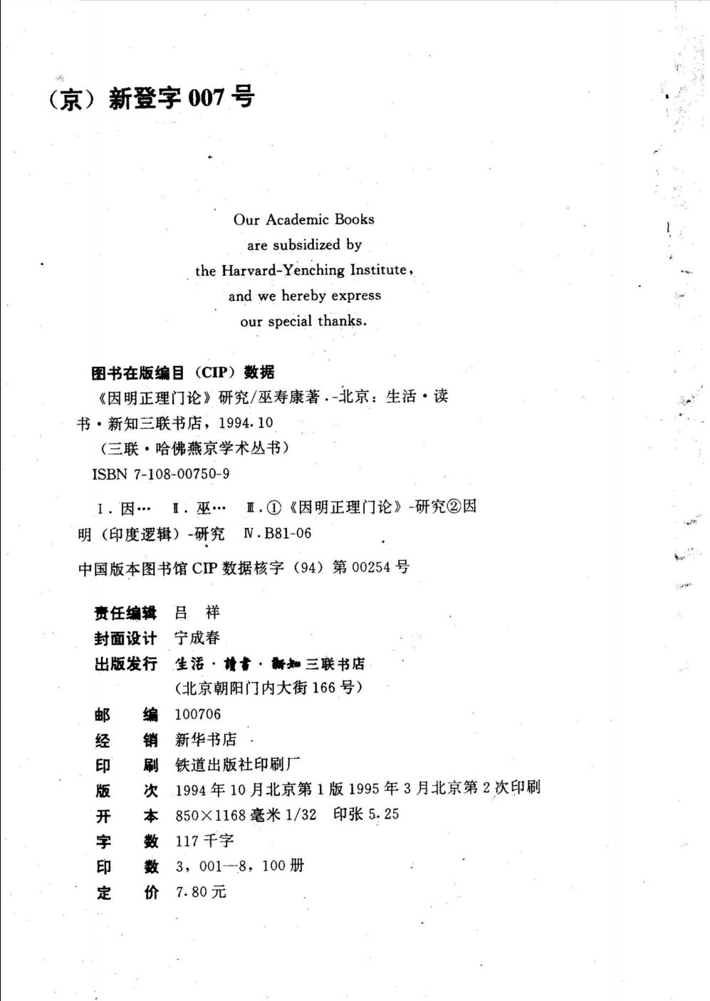 001三聯哈佛燕京學術叢書第01輯之《因明正理門論》研究 巫壽康著.pdf 48.68 MB