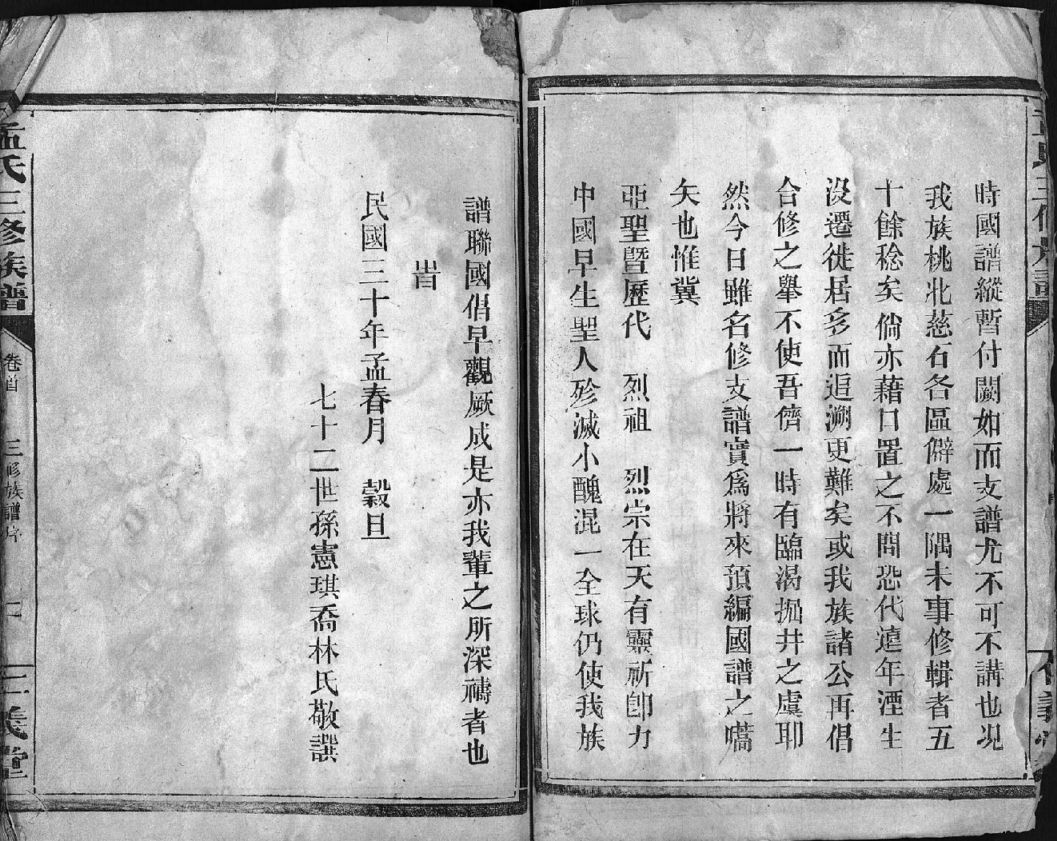 │孟氏三修族谱, 1, 卷首_ 目录 编谱名目 谱序 修谱条例 人像, 1941.zip 85.39 MB
