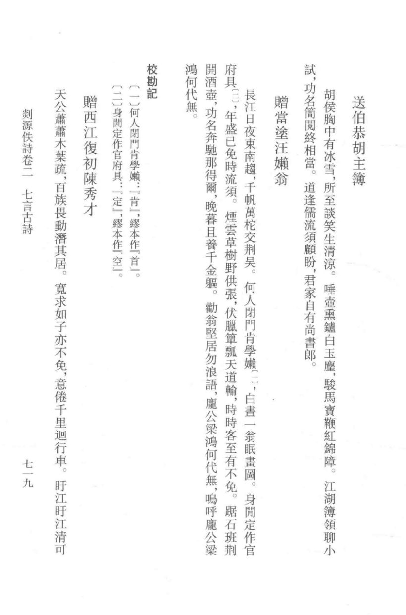 文丛中所收文献,以点校后排印或据原本影印两种方式出版。对文献的整理,只据底本与参校本、参校资料等进行校勘标点,对底本文字的讹、夺、衍、倒作正、补、删、乙,有需要说明的问题,则作出校记,—般不作注释。每种图书,在不与本文丛编纂总则冲突的情况下,可以根据本著作实际情况,另行制定整理凡例。