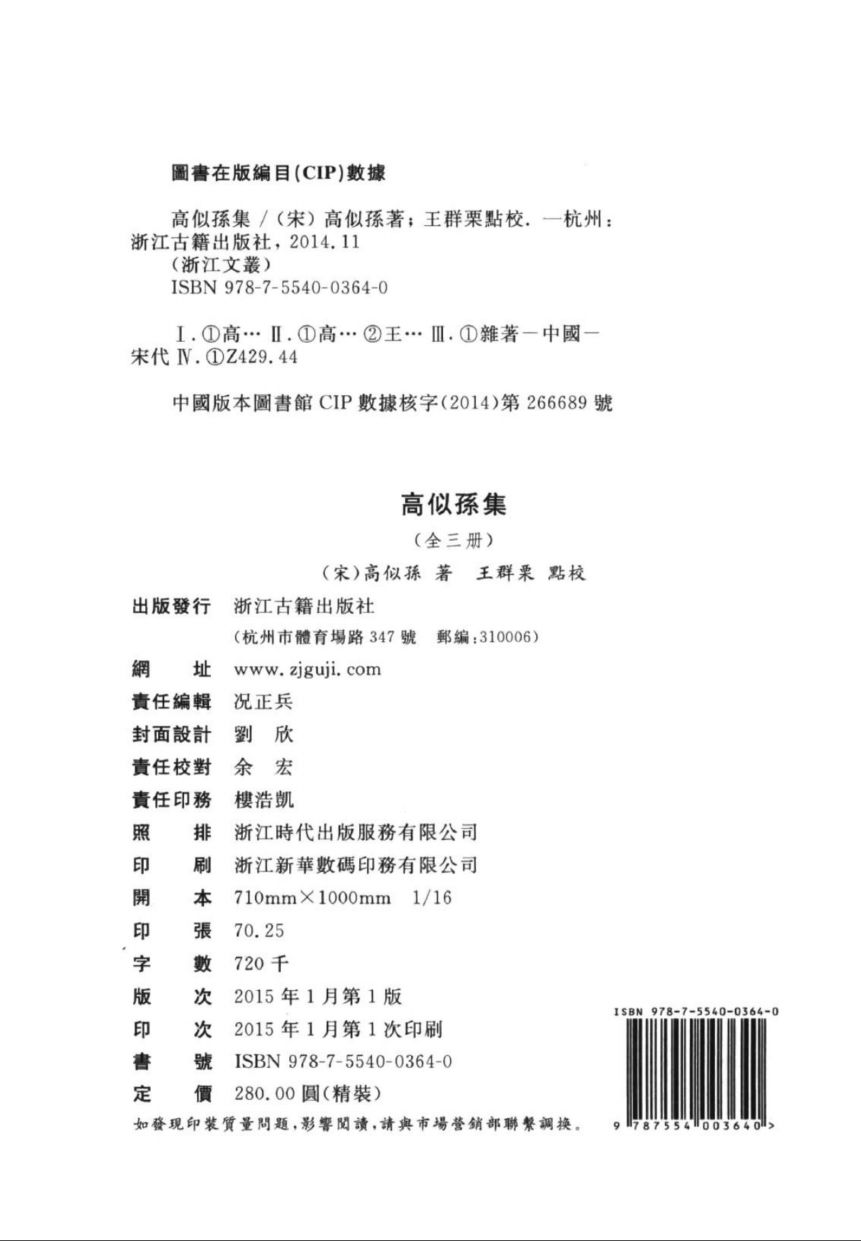 出版社:浙江古籍出版社