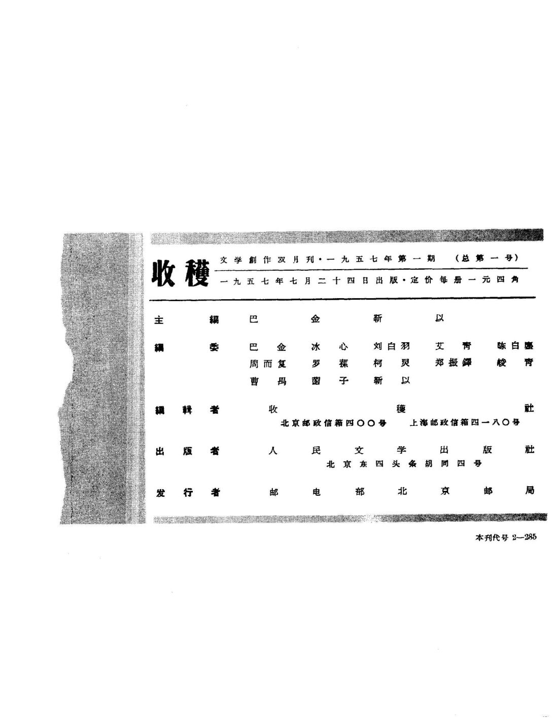 收获(1957-2015)共242册