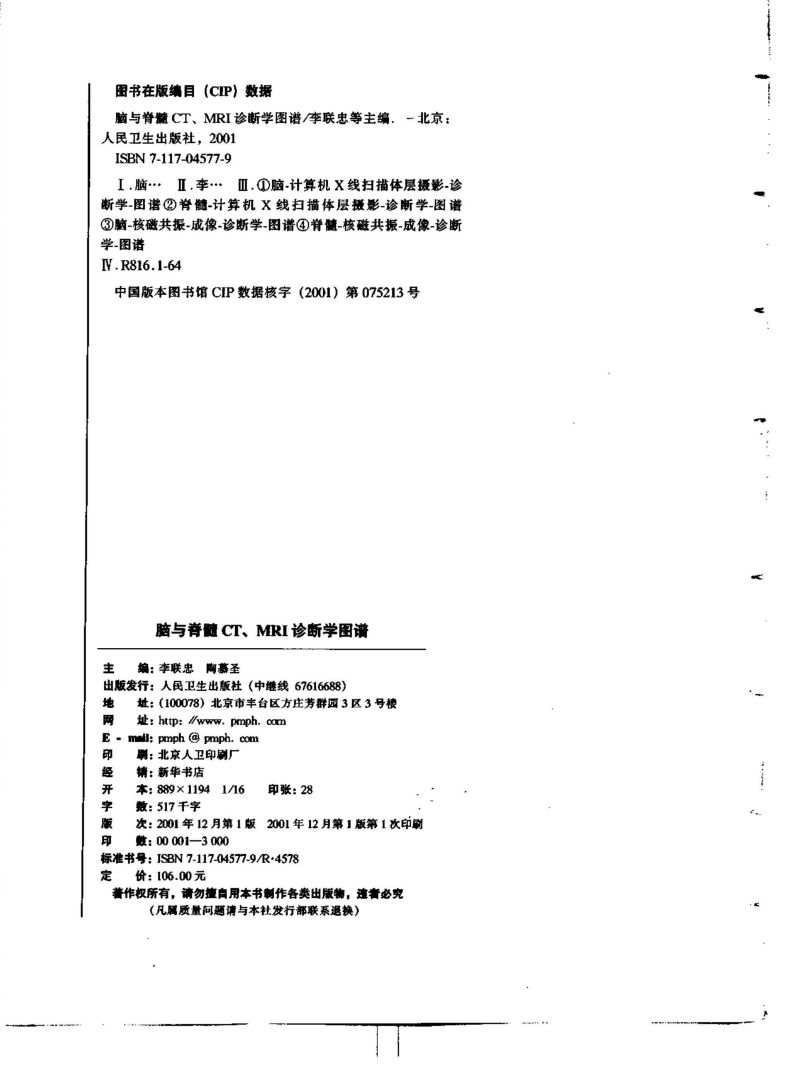 033010_脑与脊髓CT、MRI诊断学图谱_李联忠,陶慕圣主编_北京:人民卫生出版社_2001.pdf 126.13 MB