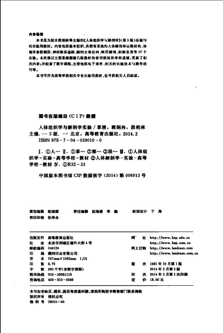 033804_人体组织学与解剖学实验_辜清,郭炳冉,段相林主编_北京:高等教育出版社_2014.pdf 67.81 MB