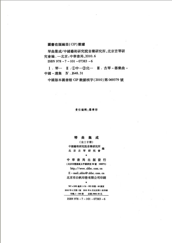 全书《据本提要》,查氏原稿刊于《查阜西琴学文萃》五七五-六九三页(中国美术学院出版社一九九五年版)。本编提要,在尊重查氏原稿的基础上,根据具体情况,由《琴曲集成(套装共30册)》整理者作了适当修改。