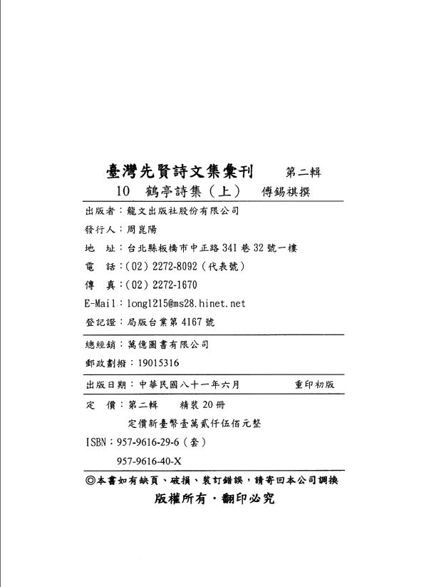 │010台湾先贤诗文集汇刊 第2辑 10 鹤亭诗集 上.pdf 93.97 MB