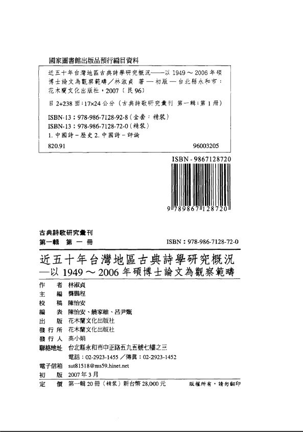 ││001古典诗歌研究汇刊 第一辑 第1册 近五十年台湾地区古典诗学研究概况——以1949-2006年硕博士论文为观察范畴.pdf 124.06 MB