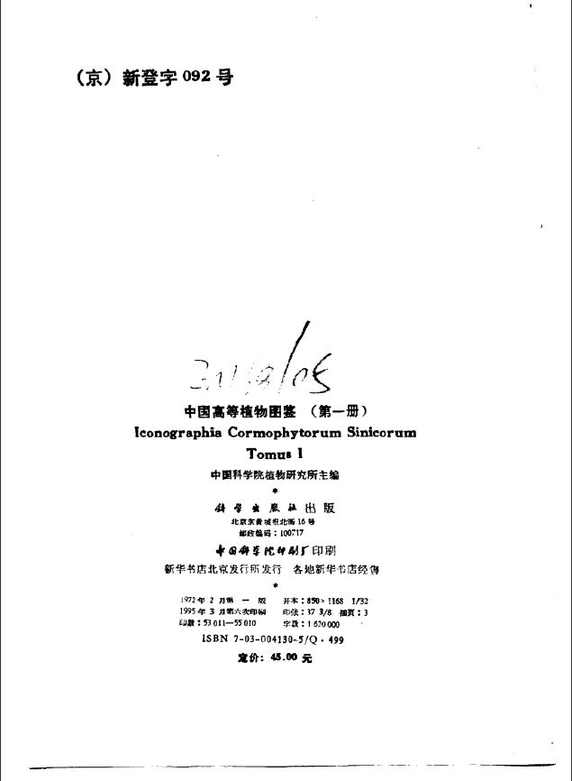 001中国高等植物图鉴 第一册 中国科学院植物研究所 科学出版社 1972.pdf 522.31 MB