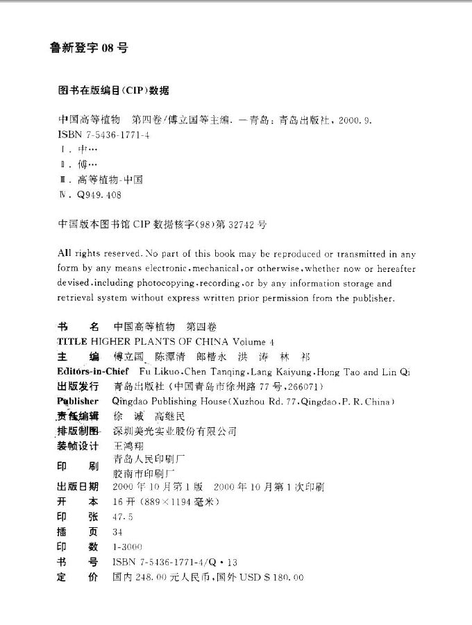 04 中国高等植物 第4卷 傅立国,陈潭清,郎楷永等主编 青岛出版社 2000.pdf 172.80 MB