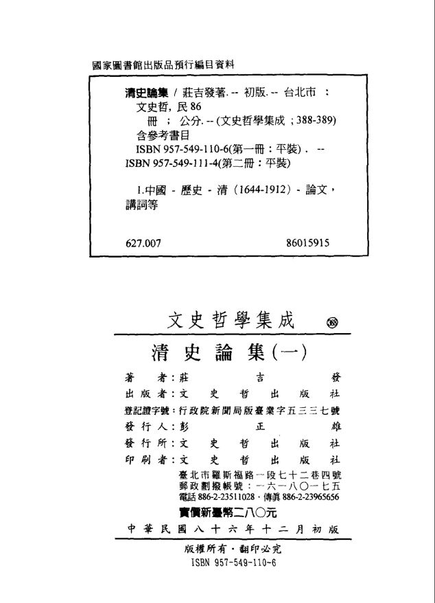 │清史论集 01 莊吉发著_文史哲出版社_民国86.12.pdf 312.02 MB