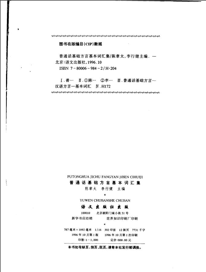 普通话基础方言基本词汇集 词汇集 (上卷) 陈章太 李行健编 语文出版社 1996