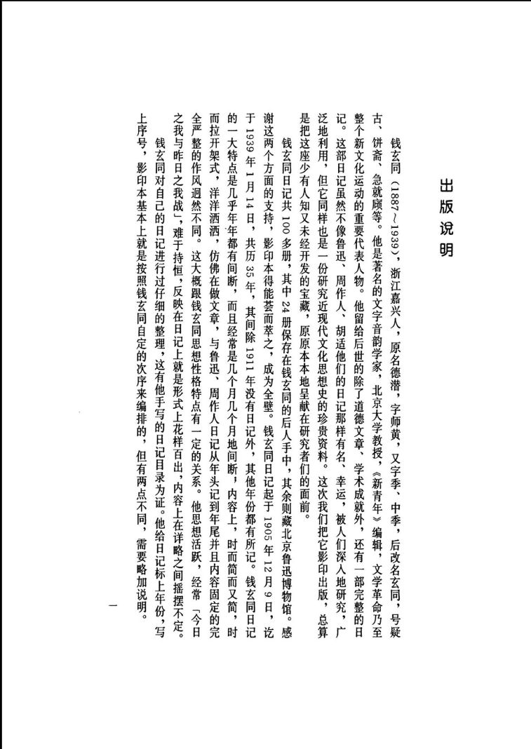 钱玄同先生的日记起于1905年底,讫于1939年初,历时35年。
