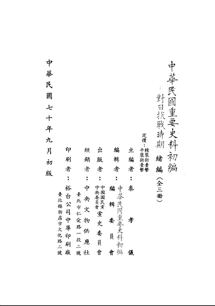 中华民国重要史料初编--对日抗战时期(共10册)