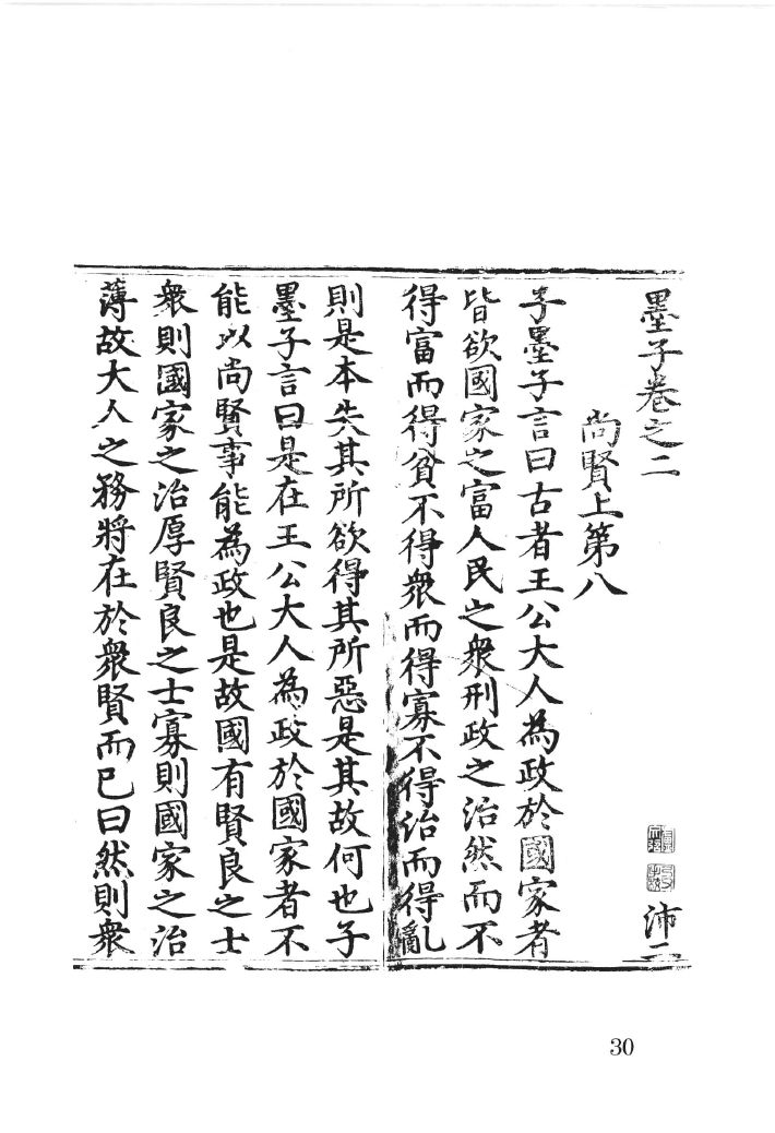 《墨子间诂》(初本二)清孙诒让撰 清光绪二十一年(1895)苏州毛上珍聚珍木活字本