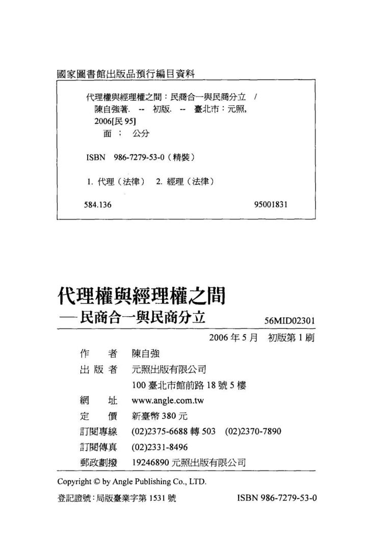 004代理权与经理权之间 民商合一与民商分立 陈自强著 元照出版有限公司 2006.pdf 144.26 MB