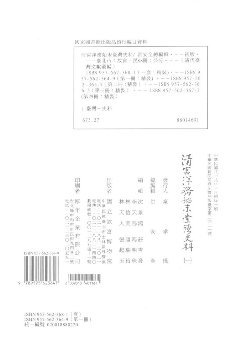 清宫洋务始末台湾史料 1 洪安全总编辑 民国88.10.pdf 171.59 MB 清宫洋务始末台湾史料 2 洪安全总编辑 民国88.10.pdf 191.52 MB 清宫洋务始末台湾史料 3 洪安全总编辑 民国88.10.pdf 203.26 MB 清宫洋务始末台湾史料 4 洪安全总编辑 民国88.10.pdf 210.76 MB