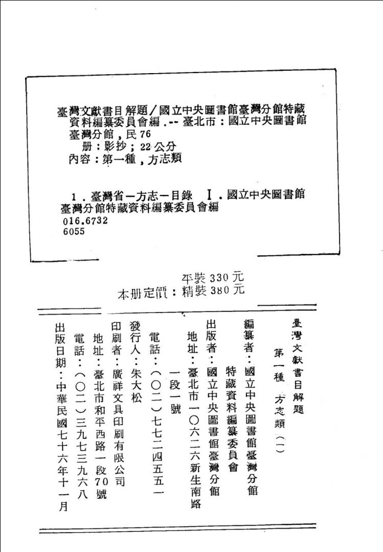 出版机构:国立中央图书馆台湾分馆