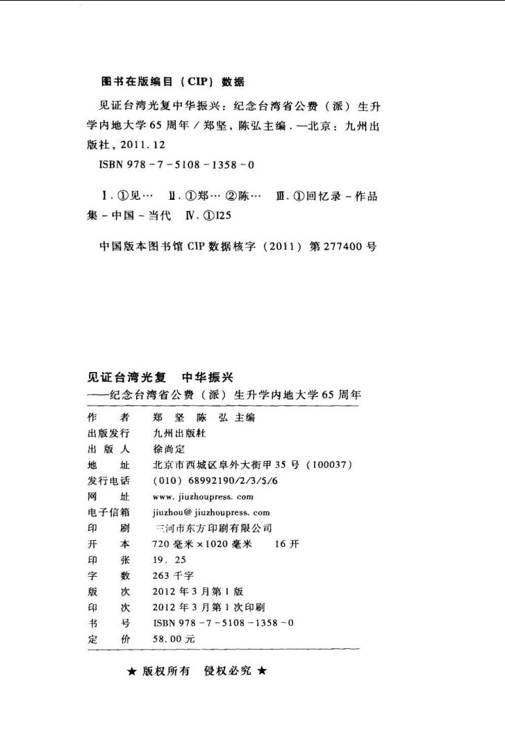 008.1946-2011年见证台湾光复中华振兴 纪念台湾省公费(派)生升学内地大学65周年_郑坚,陈弘主编_北京:九州出版社_2012.03.pdf 118.93 MB