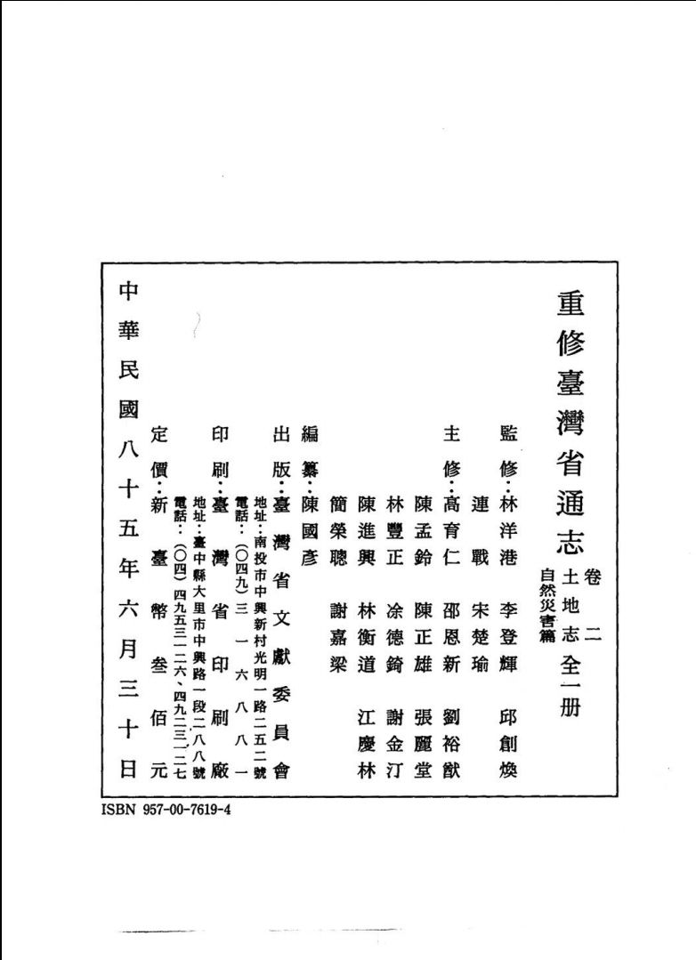 014重修台湾省通志 卷2 土地志 自然灾害篇 全1册_陈国彥_台湾省文献委员会_1996年06月第1版.pdf 159.54 MB