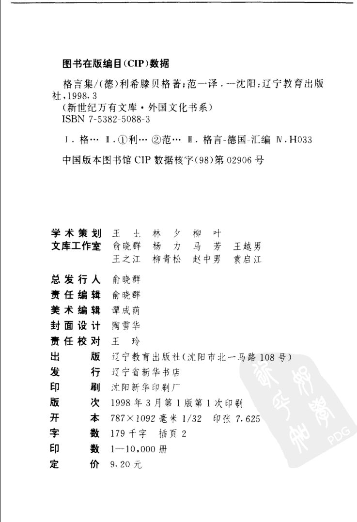 │[新世纪万有文库]格言集[德]利希滕贝格.范一译.辽宁教育出版社(2001).pdf 6.50 MB