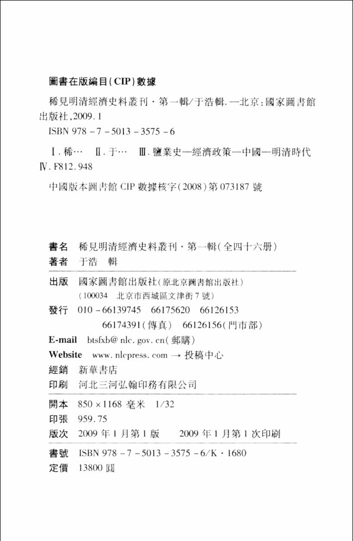 本书第一辑收录三十余种明清时期稀见的经济史料,主要是两淮、两浙、山东、福建、河东、两广、东三省等各地区的盐政史料,如《(雍正)两淮盐法志》、《(嘉庆)两广盐法志》、《两淮案牍钞存》、《两淮盐务同官录》、《(道光)福建盐法志》、《东三省盐法志》等,内容涉及地区经济、财政、法律、官制、教育、赈济、交通等,以及地方人物的大量传记、碑志、奏议的文献资料,对于研究明清史、近代史,和区域经济、财政等专题史研究有重要参考作用。